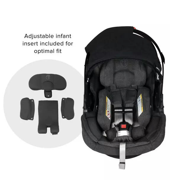 Includes durable 5-point harness, infant head support insert, UV sunshade with Paparazzi Shield™ extension.