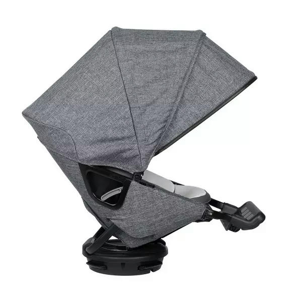 Modern, modular stroller seat designed to rotate so babies can see the world around them.