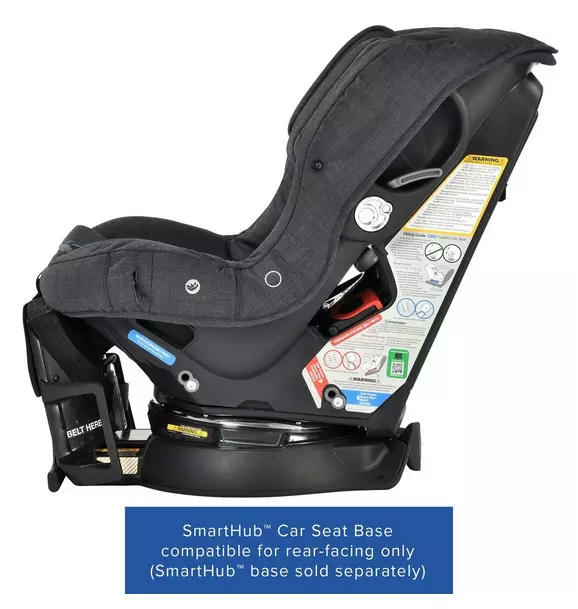 Helps prevent injury to parents’ backs by docking into SmartHub® Base at any angle on stroller, in car, (and even on RockerBase), then rotating into position.