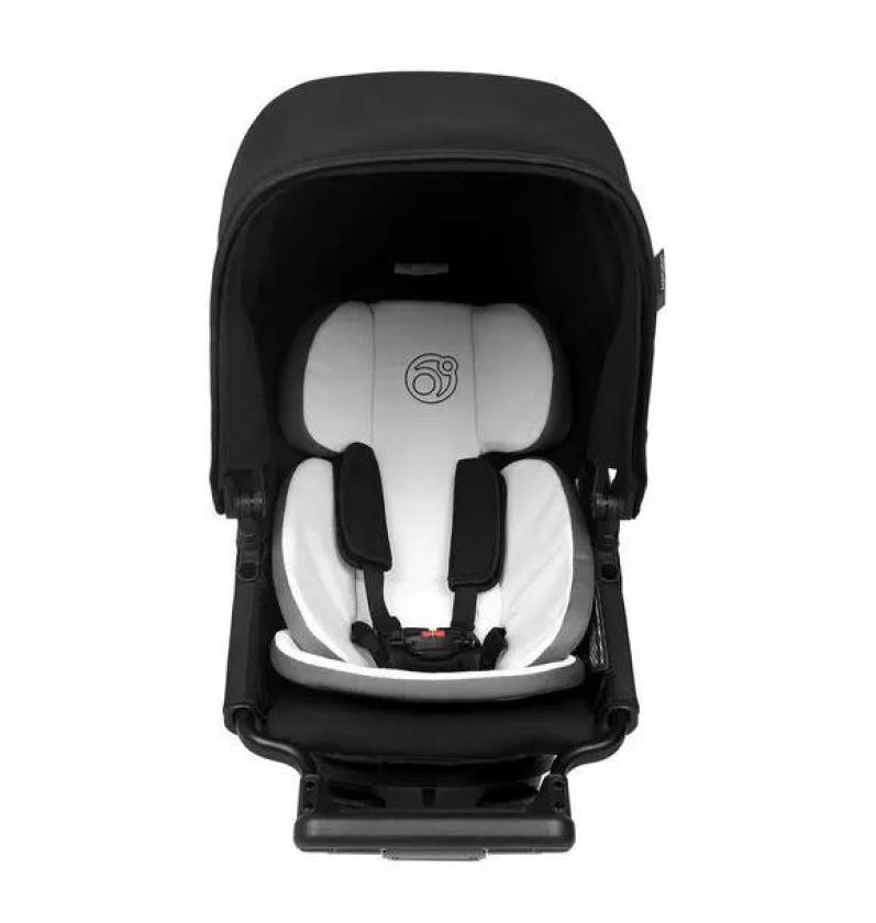 Modern, modular stroller seat designed to rotate so babies can see the world around them.