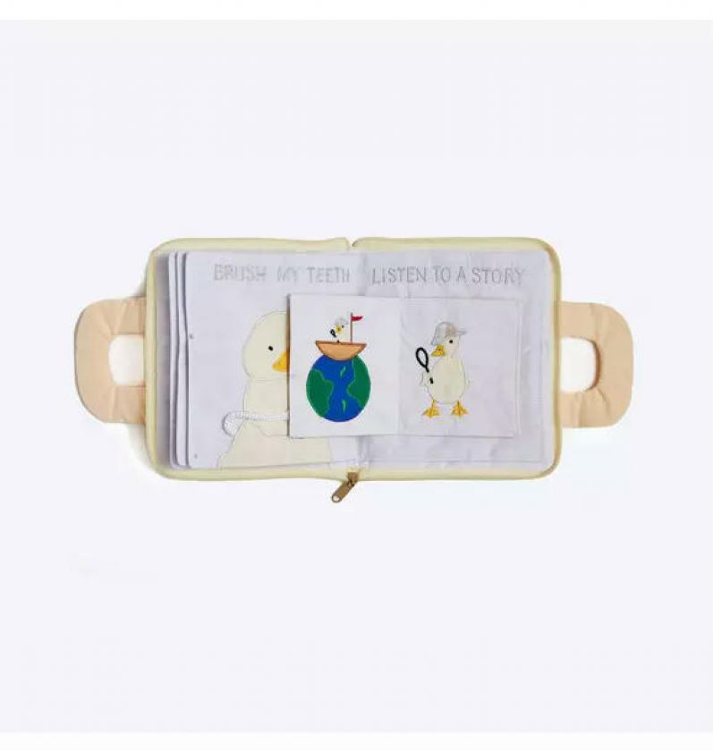 This beloved activity book is a timeless favorite, designed to enhance the joy and comfort of your little one's bedtime routine. As the adorable gooseling prepares for bed, it embarks on a series of engaging tasks: tidying up toys, shedding its feathers, enjoying a soothing bath, slipping into cozy pajamas, brushing its beak, and eagerly listening to a sleepy story. With durable handles for easy transport and a secure zipper closure, this book promises to be a trusted companion throughout all your adventures, offering gentle reminders of their essential sleep routine.