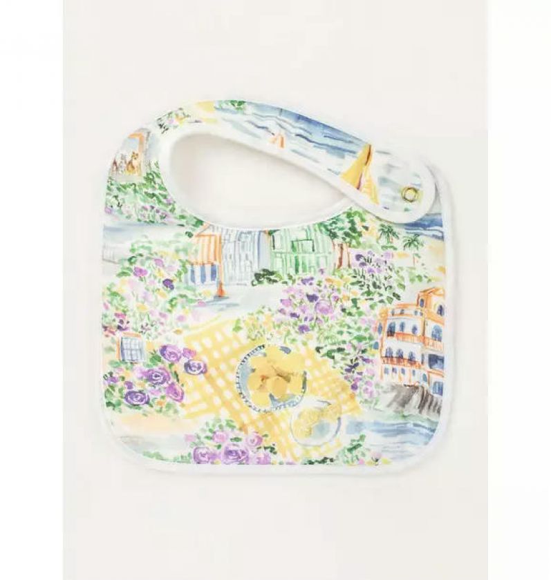 The Perfect Bib, constructed with a buttery soft cotton terry layer on the back and a beautiful printed muslin front, is absorbent yet elegant. Look forward to meal times, bottle feedings, and those extra “drooly” days being more polished and fun.