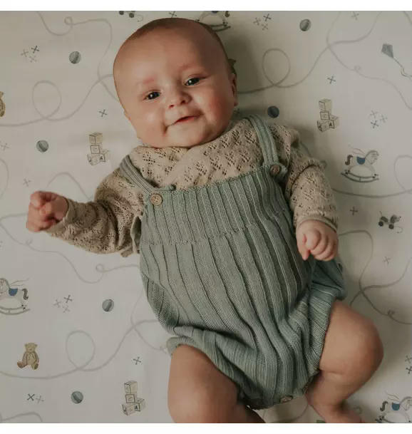 To create this extra soft crib sheet, we worked with Cotton Sateen —a weave that has a softer, silkier feel compared to cotton sheets. Lofty, breathable and keeps the baby comfortable through the night. It's also OEKO-TEX certified, which means it’s woven from only the purest materials and free of harmful toxins.