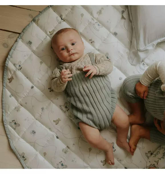 Nurture your child in a world of wonder with this playmat, thoughtfully designed for a cozy playtime oasis and celebrating those important developmental milestones. Crafted from the finest, soft materials and adorned with whimsical prints, it's perfect for tummy time, interactive play, and more.
