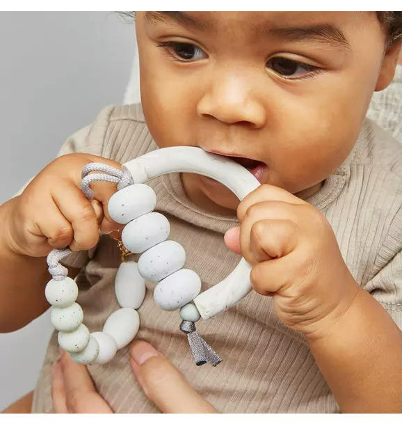 Inspired by the artful shapes that make up the world around us, the Arch Teether invites parent and child to look closer, stay curious, and explore. Featuring dramatic custom beads in brilliant colors, Arch builds a bridge between the every day to the extraordinary, enchanting parents, little ones, and art lovers of all kinds.