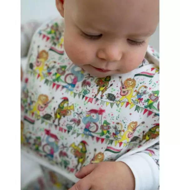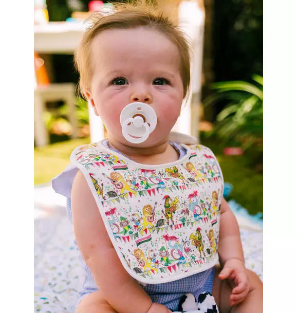 The Perfect Bib, constructed with a buttery soft cotton terry layer on the back and a beautiful printed muslin front, is absorbent yet elegant. Look forward to meal times, bottle feedings, and those extra “drooly” days being more polished and fun.