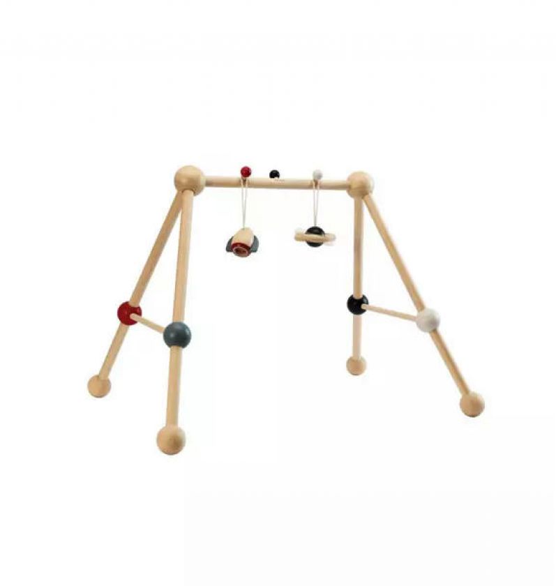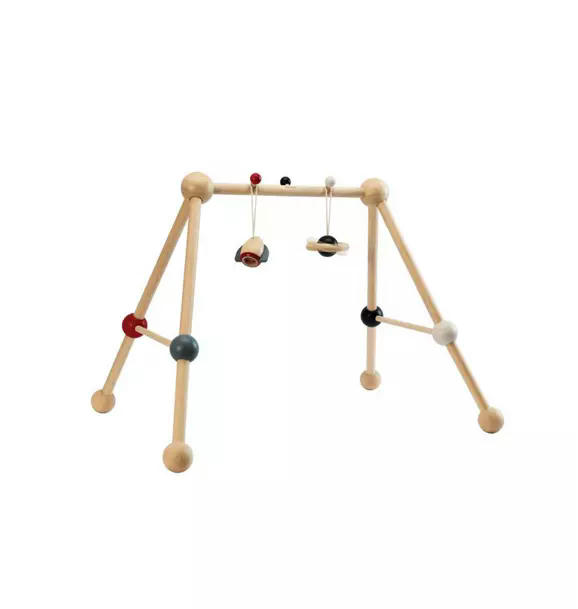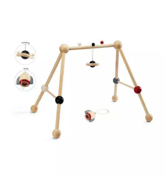 This engaging play gym encourages babies to explore and interact with their surroundings, supporting early development and motor skills. It includes two high-contrast, suspended toys that captivate their attention and stimulate curiosity, promoting hand-eye coordination as they reach and grasp. As the child grows, these toys can be detached for continued play, adapting to different stages of development. The gym's sturdy four-legged structure provides stability, preventing rocking and ensuring a safe environment for active play. Made from child-safe, eco-friendly materials, it’s designed with both safety and sustainability in mind. High-contrast colors are especially beneficial for young babies, as they are easier to see and help develop visual focus.