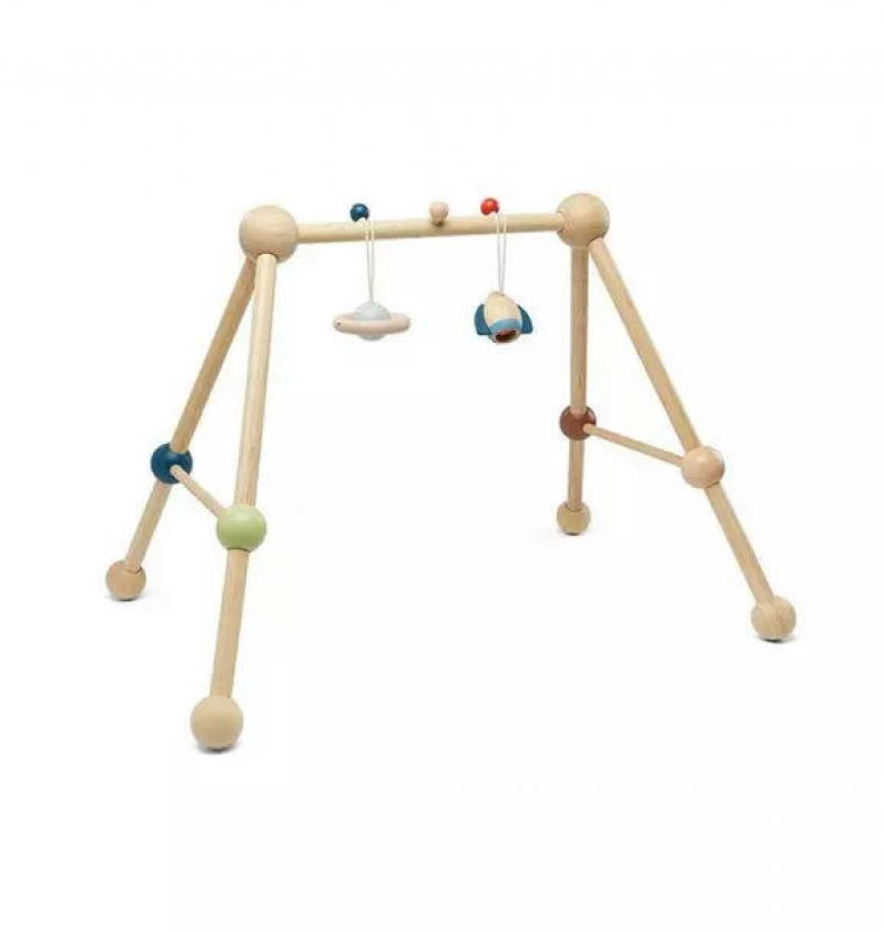 Comes with a rocket and planet toy that is detachable from the top support
