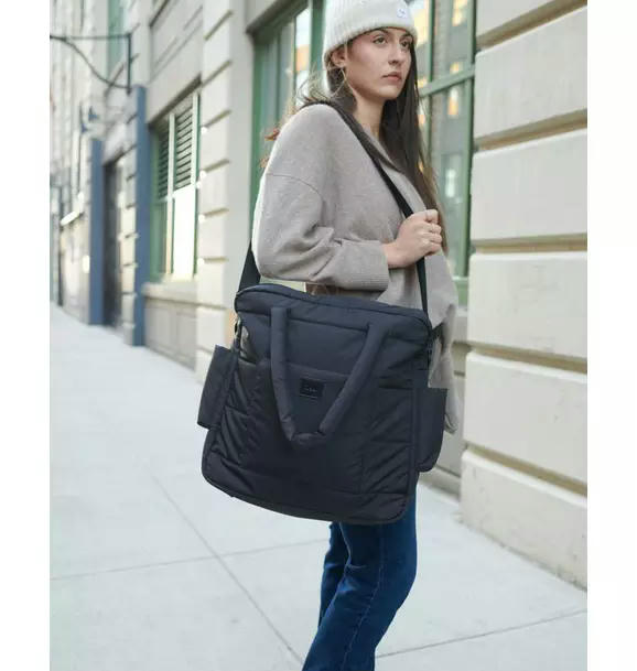 The Plaza Bag's square shaped body takes the Spanish name of a city square. First in its kind, the Plaza's high shape design, padded shoulder straps and crossbody strap make it the perfect travel accessory or diaper bag. Lightweight, spacious and water repellent, you will fit all of your daily, baby, gym or travel essentials on any given occasion, while always remaining organized with the 5 specious internal pockets and 2 external side pockets. Designed with a padded laptop compartment. It's that throw-in-everything bag you've been searching for.
