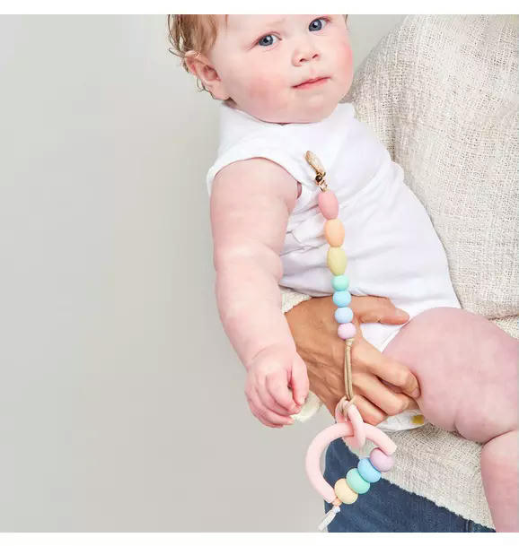 Rainbow Sherbet Arch Ring Teether + Clip Set