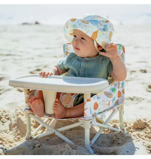 Got a little one who won't sit still? Maybe it's because... they're sitting on the wrong seat! Introducing the ultimate, most comfortable baby chair now available in the US: the IZIMINI portable booster seat. With over 1,500 5-stars reviews, our iconic baby chair is loved by 60,000 families in Australia and the US. Whether you're strolling along the boardwalk in California, exploring Central Park in New York, or simply relaxing in your own backyard, you won't find a chair for your little one that's as stylish, cozy, and practical as the IZIMINI Baby Chair. This adorable seat isn't limited to the beach - it's perfect for picnics, camping trips, family gatherings, or whenever you don't have a high chair as it can be used as a booster seat on a dining chair thanks to the straps included in the matching carry bag. Showcases a stunning floral design by acclaimed Sydney-based artist Sara Riley.