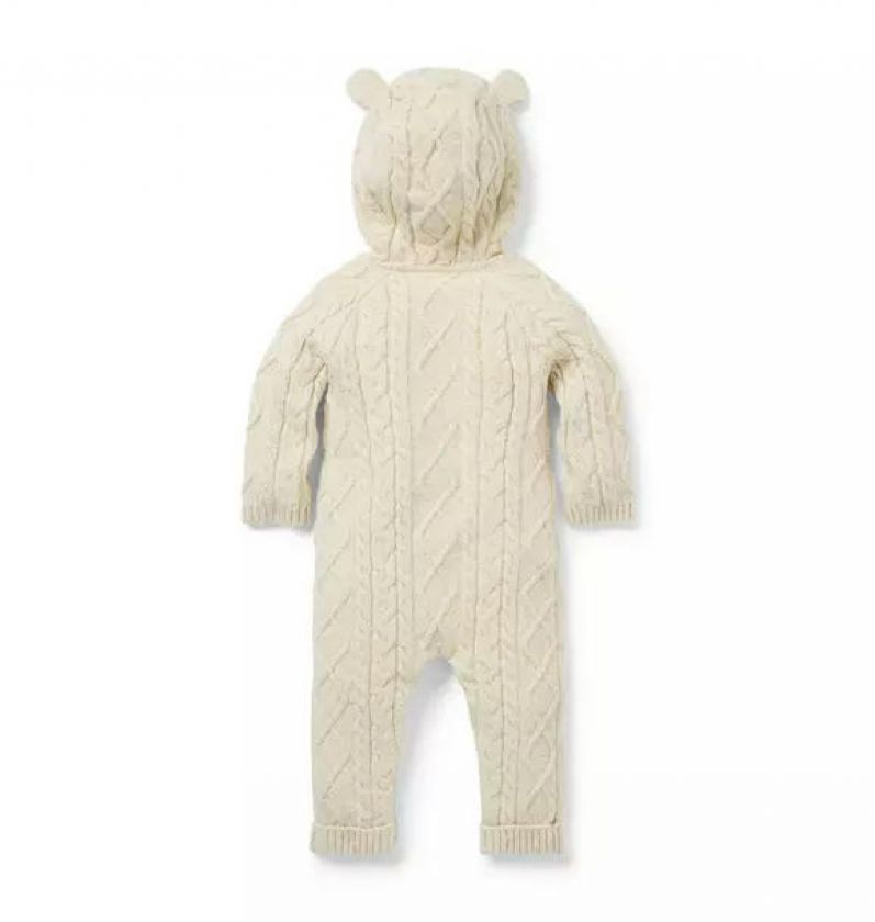 Our soft hooded one-piece keeps baby extra cozy. In an allover cable knit with little bear ears and ribbed details too.