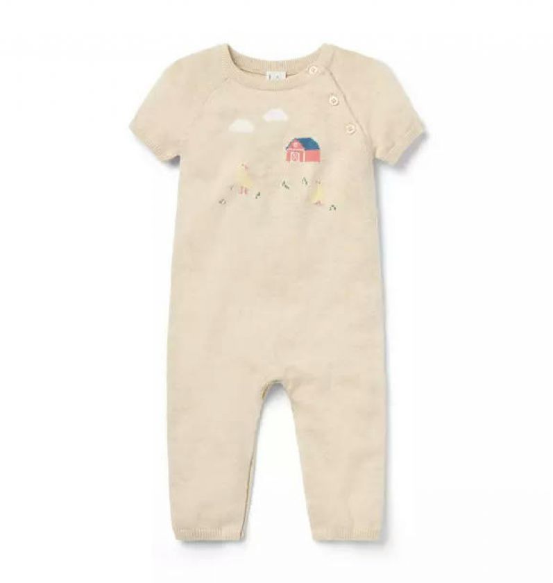 Our one-piece in pure cotton is an instant favorite for baby. Detailed with an intarsia-knit barn and little ducks too.