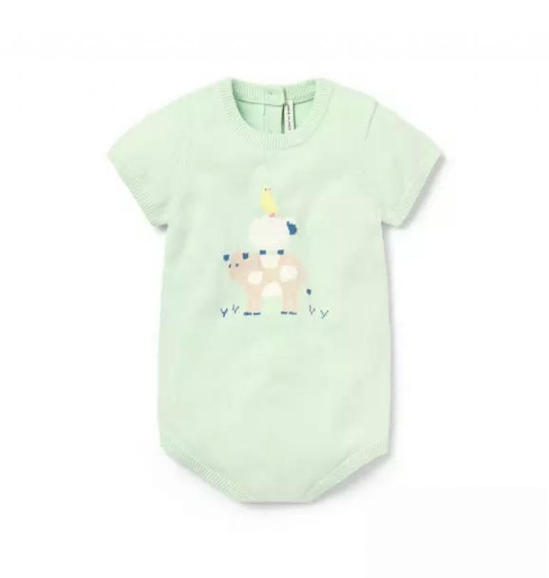 A little romper we love a lot. Featuring baby's favorite farm friends in a soft and cozy knit. It's ready for first adventures.