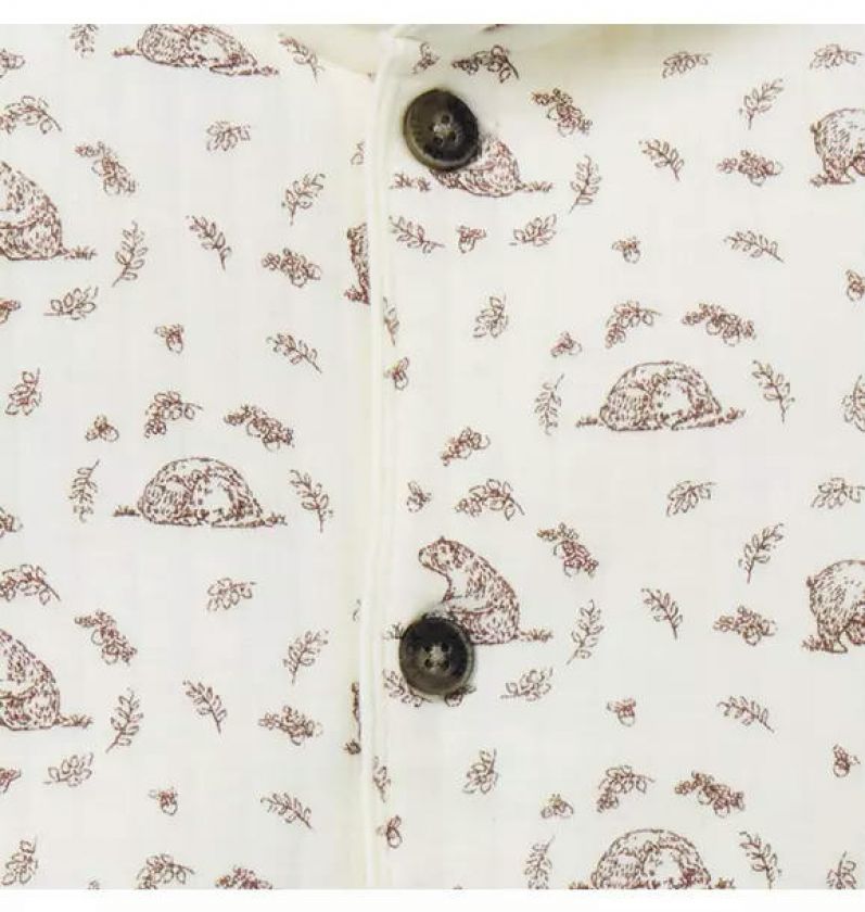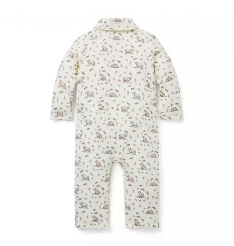 Cozy first moments start with this soft quilted favorite. Designed with an allover bear toile, a shawl collar and little pockets too.
