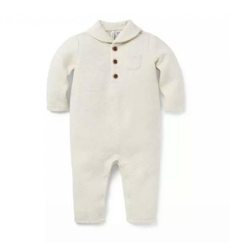 Our soft and cozy one-piece is perfect for every first moment. Featuring allover diamond quilting, a classic shawl collar and a little chest pocket too.