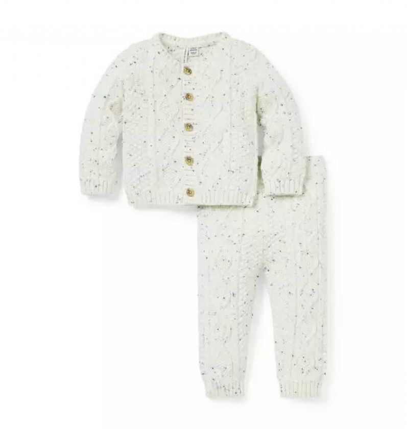 The perfect match for cozy first moments. With allover cable knit, our pure cotton sweater set is an instant love, wear-ever baby goes.