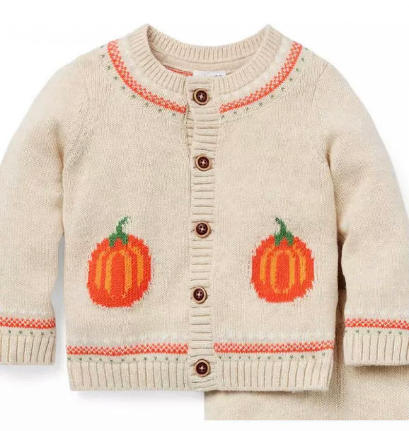 Get ready for sweater weather with our matching set in pure, soft cotton. Featuring intarsia-knit pumpkins, striped accents and a back pocket, it's perfect for baby's first crisp days.