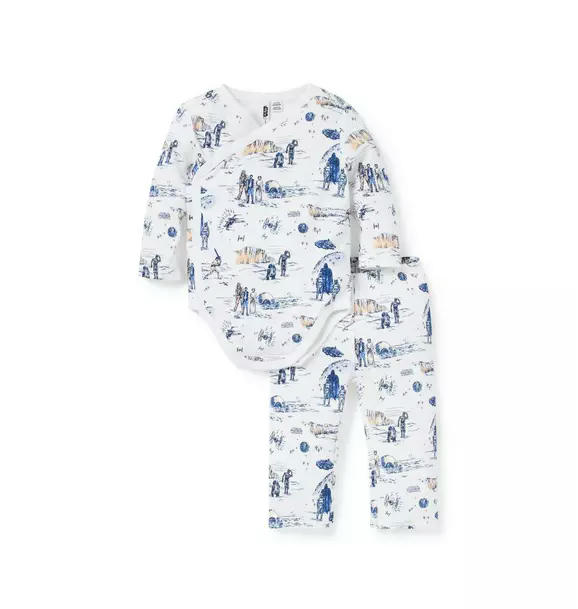 First moments are filled with galactic style, thanks to our STAR WARS™ set. Featuring a kimono-inspired wrap bodysuit and a pull-on pant with a little back pocket.