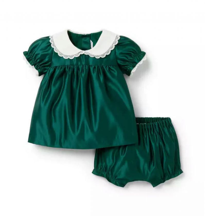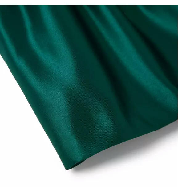 Holiday moments are extra special with our set in shining satin. We love the contrast collar, lace trim and little ruffle details too.
