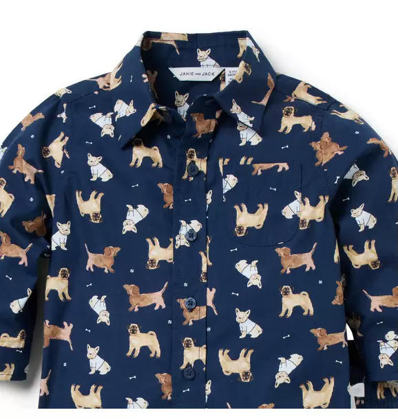 Best friends for first moments with our matching set in pure cotton poplin. Featuring an allover dog print, roll cuffs and a little chest pocket.