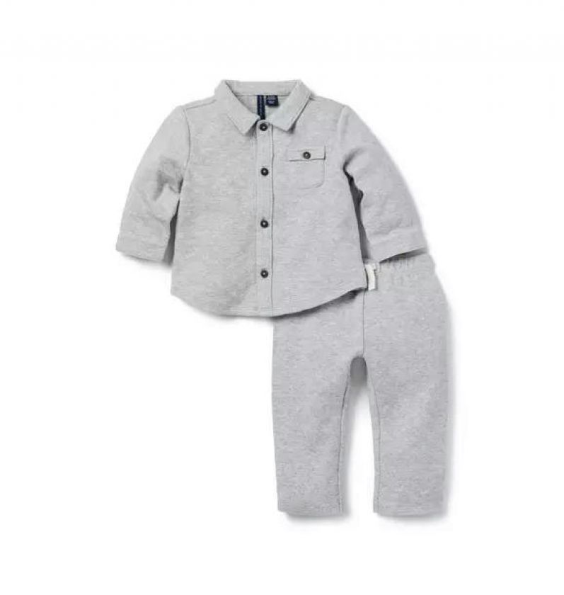 For effortless style that's always a match, reach for this soft quilted set. With a buttoned chest pocket and tie detail, it's perfect for all of baby's cozy firsts.