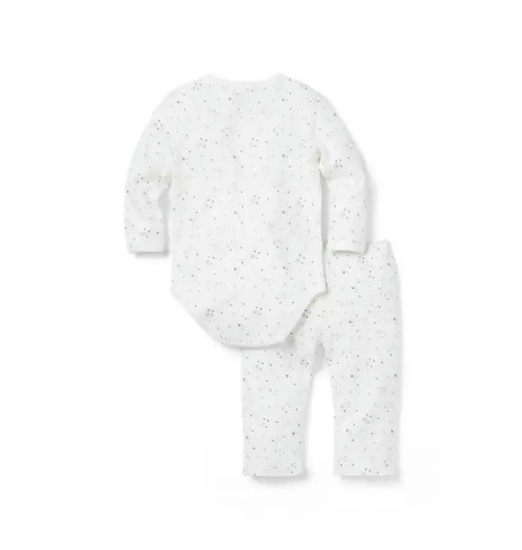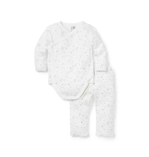 Welcome baby in our soft knit set. Featuring a kimono-inspired wrap bodysuit and a pull-on pant with a little back pocket, just because.