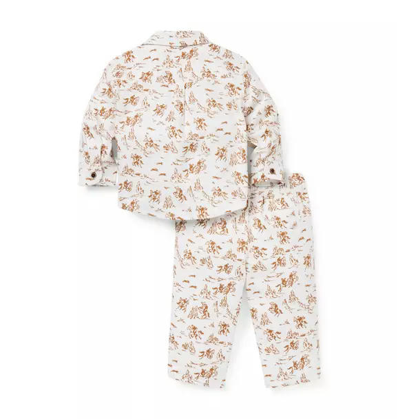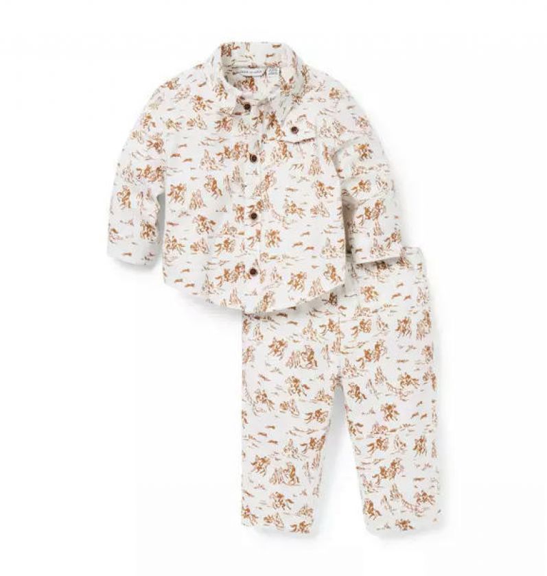 Saddle up in style with our matching set in soft cotton twill. Featuring an allover western toile, chest pocket and a little bow at the waist, it's perfect for first adventures.