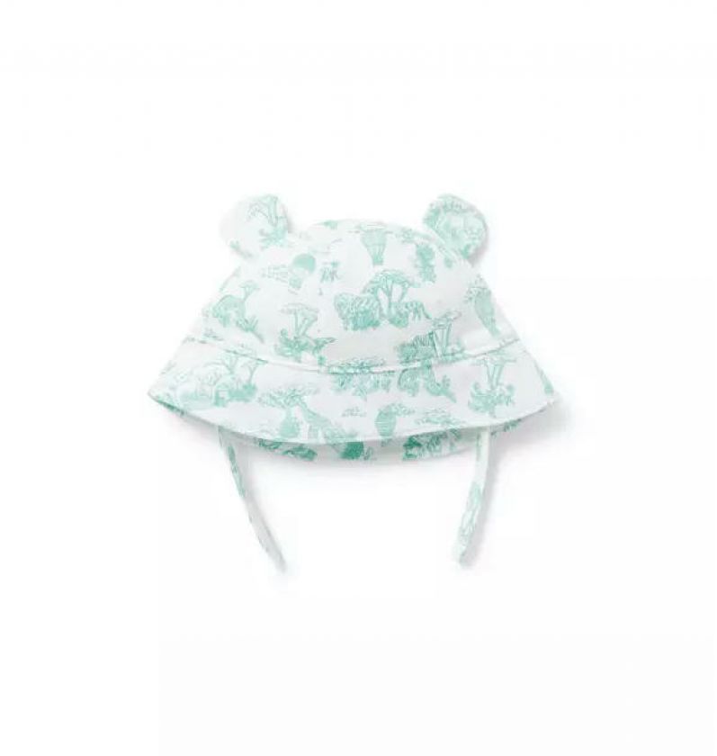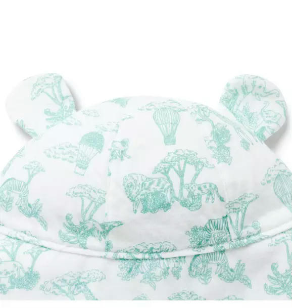 Say hello to first adventures in our safari toile bucket hat. Little bear ears make it extra special.