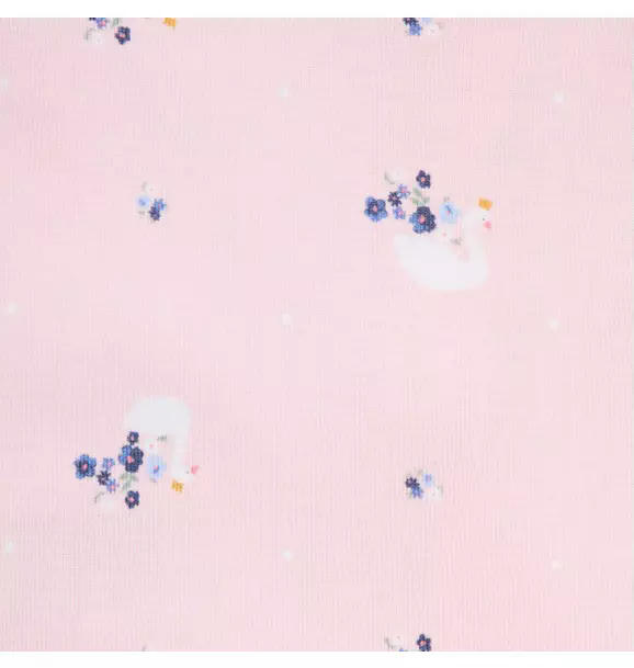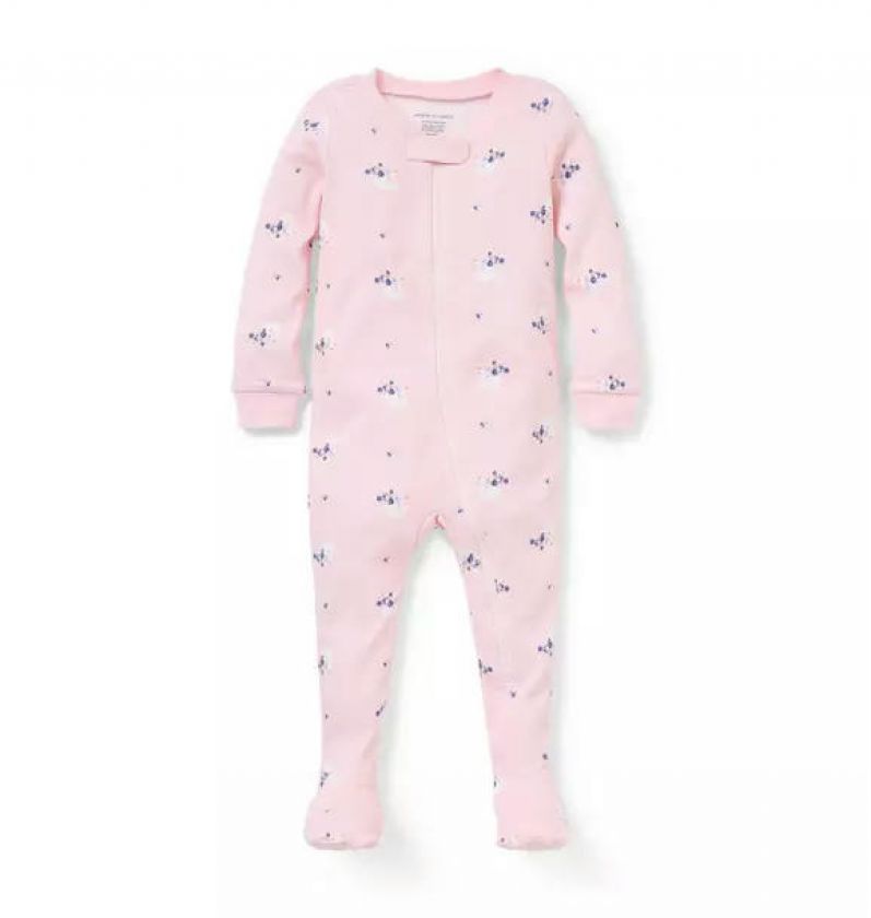 Good dreams start with our pure cotton PJ in a one-of-a-kind swan print. With even more good things, from its cozy footed style to its easy zip front.