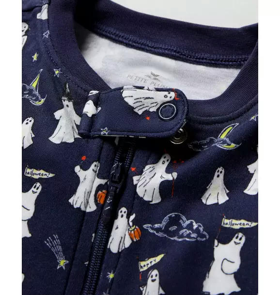 Friendly ghosts enjoy Halloween fun and games in their own creative costumes. Shooting stars and crescent moons light the way so they can enjoy trick-or-treating, too.