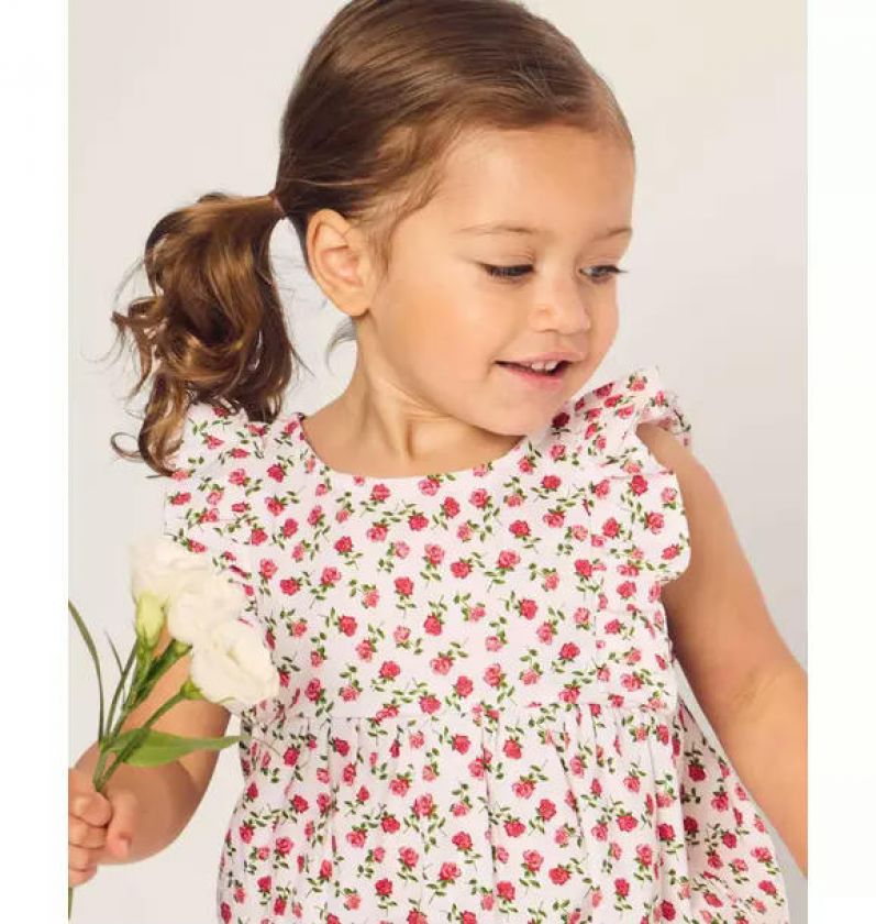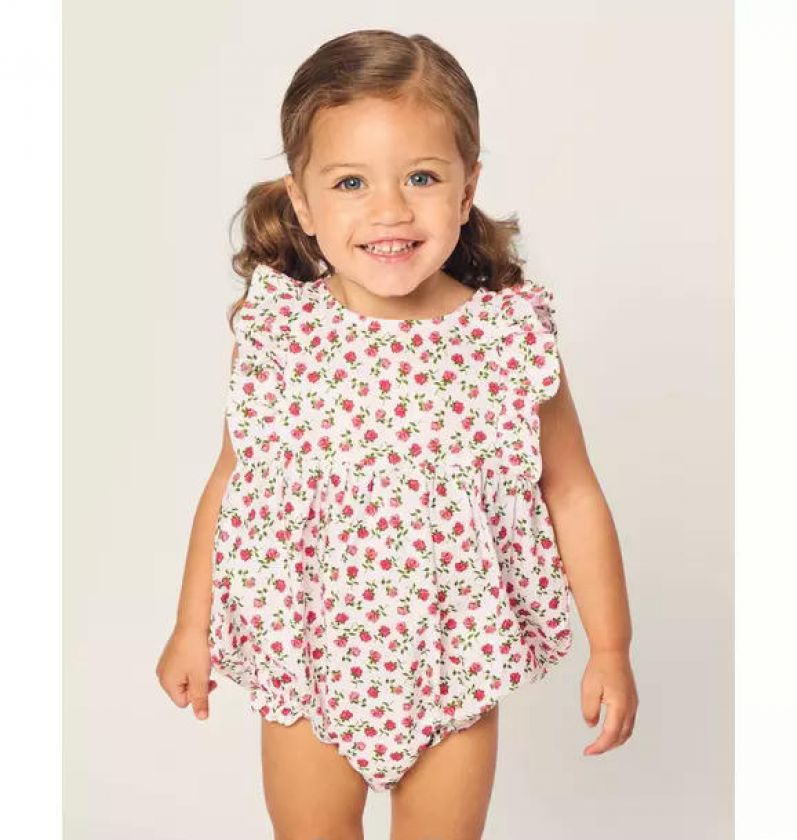 Infants Ruffled Romper in Petite Petals