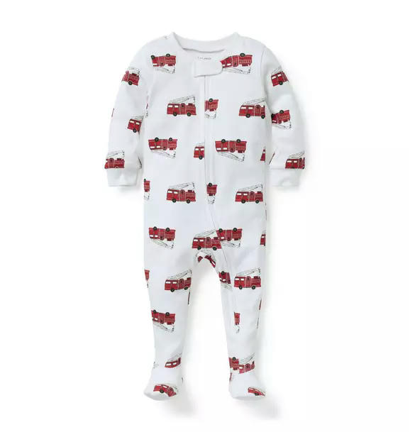Good dreams start with our feel-good soft, pure cotton PJ featuring a one-of-a-kind fire truck print. With even more good things, from its cozy footed style to its easy zip front.