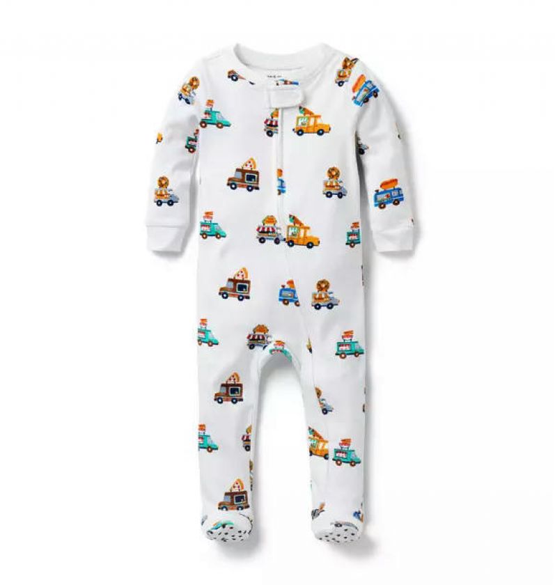 Treat them to good dreams in our feel-good soft, pure cotton PJ featuring a one-of-a-kind food truck print. With even more good things, from its cozy footed style to its easy zip front.