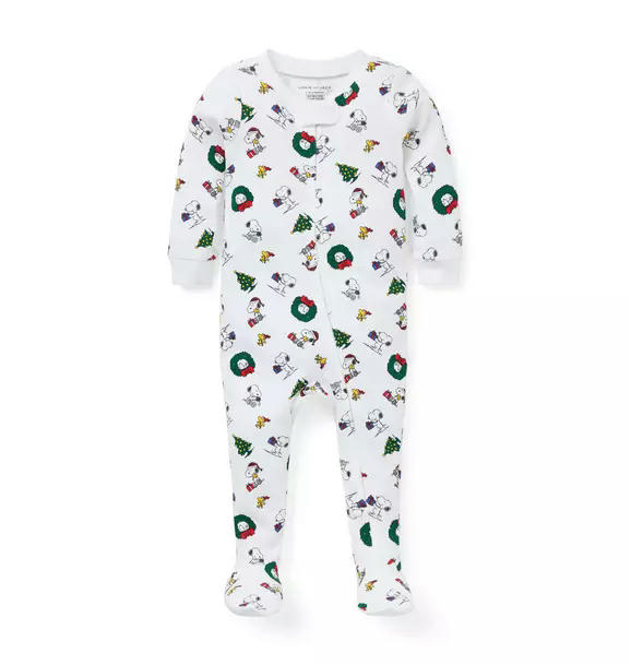 Good holiday nights with good friends in our feel-good soft, pure cotton PJ featuring a one-of-a-kind Peanuts holiday print. With even more good things, from its cozy footed style to its easy zip front.