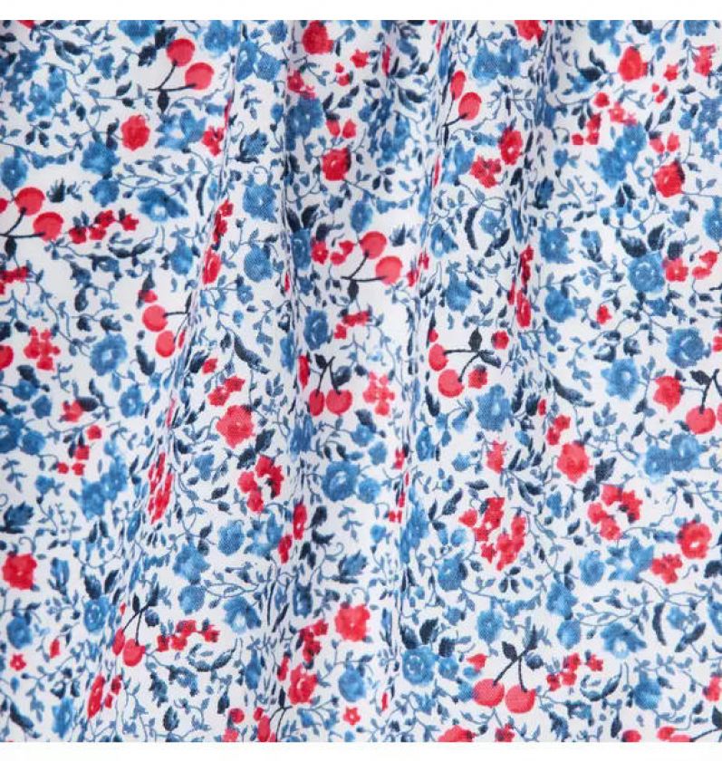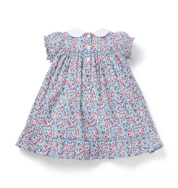 Our favorite pick for every first, featuring an allover ditsy floral with little cherries too. We love the puff sleeves, Peter Pan collar and smocked details.