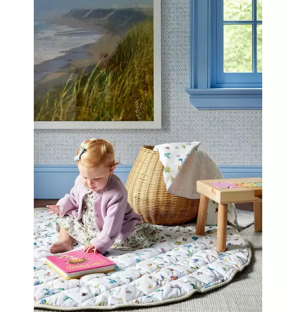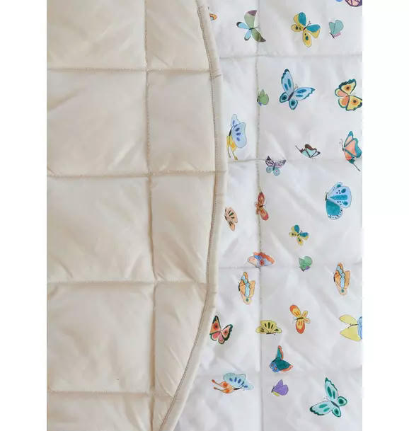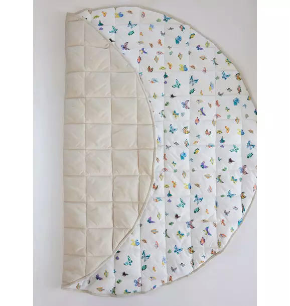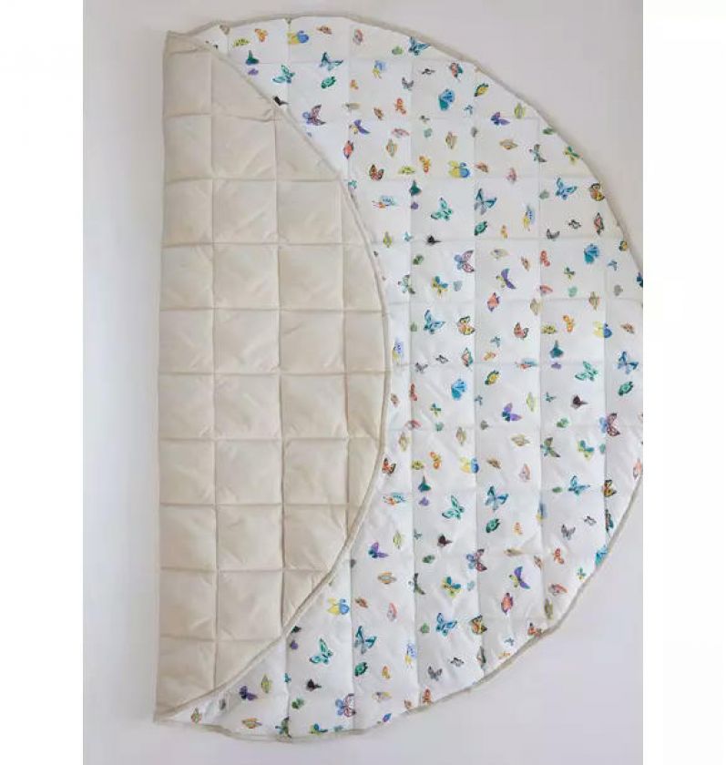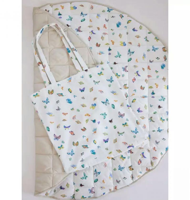 Introducing the Madame Butterfly Play Mat and Tote. The enchanting print and luxurious fabric make it perfect for tummy time. Bring joy to your child's world with this exclusive play mat.