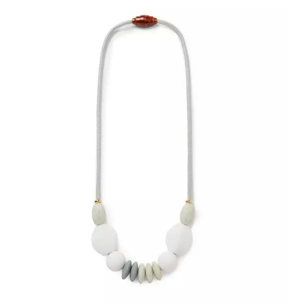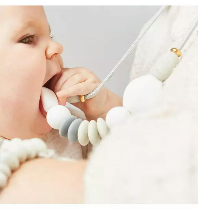 Featuring modern shapes and brilliant colors, our chewable Signature Necklace is a striking statement piece strong enough to withstand daily wear and tear and stylish enough to integrate seamlessly into your wardrobe. Handcrafted with premium materials that have been safety tested, it is the ideal baby-friendly accessory for your drooly mini me.