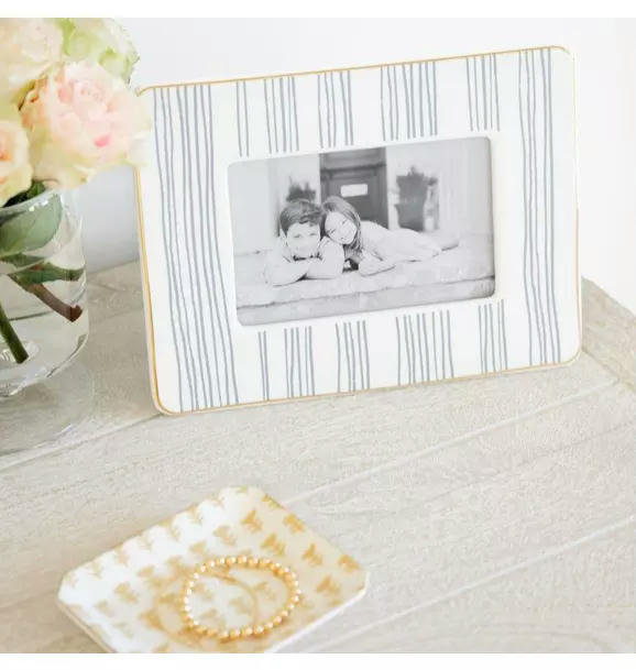 Capturing life’s most memorable moments. Our ceramic picture frame brings a touch of Sugar Paper whimsy to your home, office or favorite space, with five classic patterns and a simple desktop stand for showcasing.