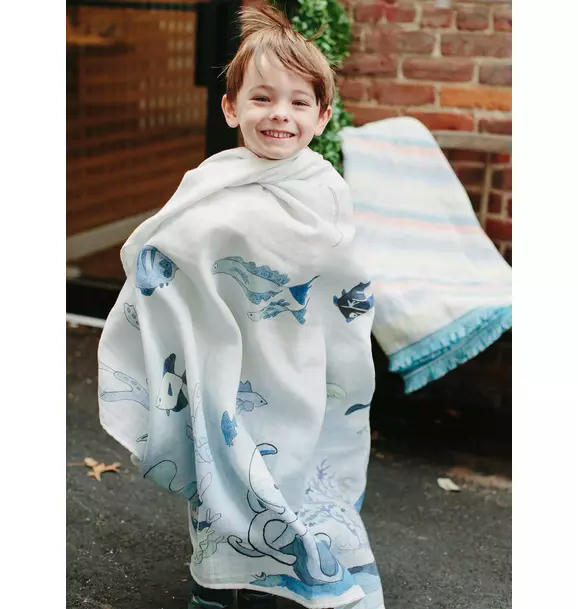 This is it: that versatile item that can do just about everything. From swaddling your precious newborn to being casually thrown around your neck as a scarf, our Shawl Blanket will become your everyday, never-leave-home-without-it accessory that will keep you and baby warm and cozy. (And don’t worry, we won’t tell your little one that you keep raiding her closet!) Deliciously soft 100% organic cotton.