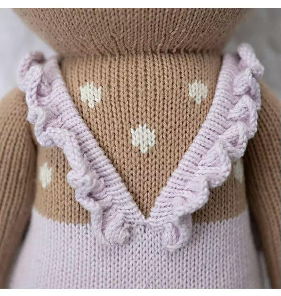 Hand knit doll with premium 100% cotton yarn. High stitch count for durability and softness.