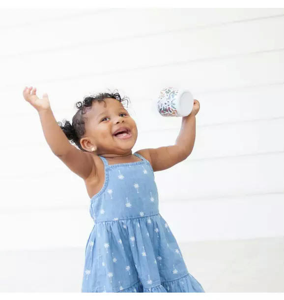 This easy-to-clean melamine sippy cup features sweet Georgia plants and woodland animals, a durable dishwasher-safe design, and a removable, leak-resistant top that makes transitioning to a toddler mug simple and cheerful.