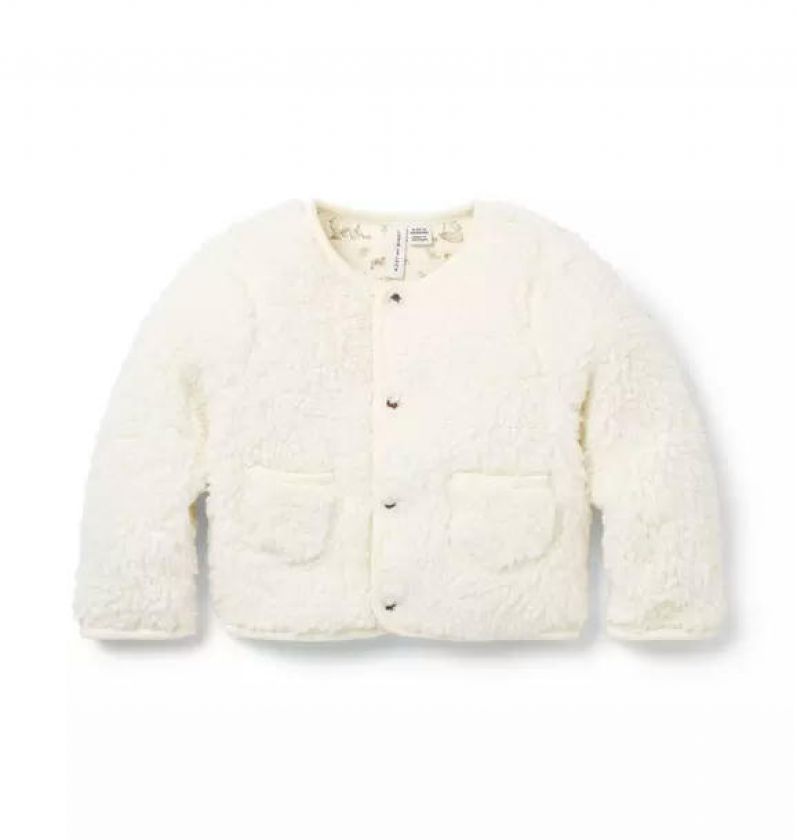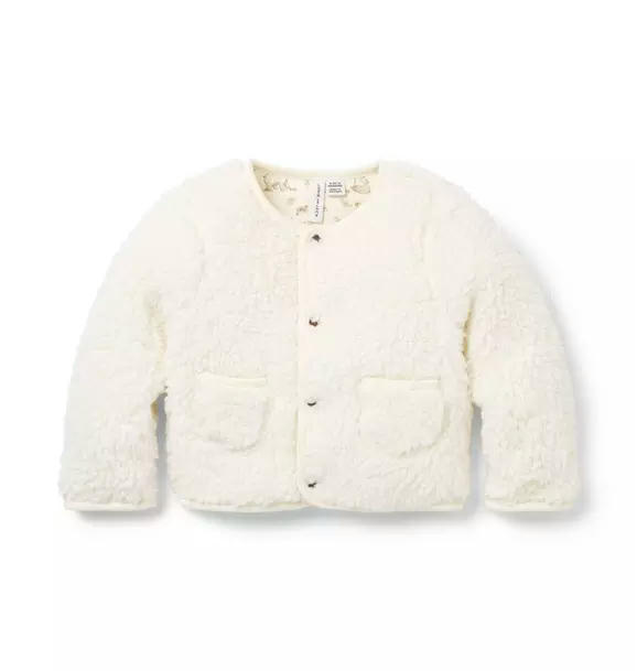 Our cozy reversible jacket is baby's favorite layer, all season long. Featuring faux sherpa, ribbed details and pockets on one side and a bear toile on the other.