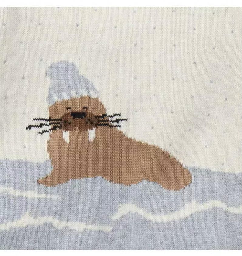 A sweater weather favorite for first moments. Featuring an intarsia-knit walrus friend and ribbed details.
