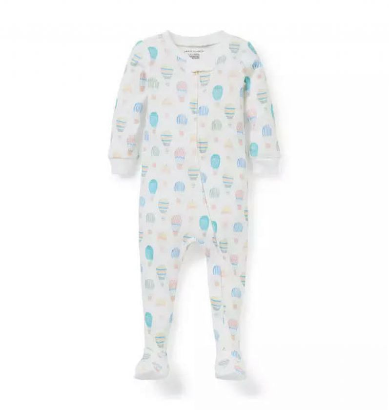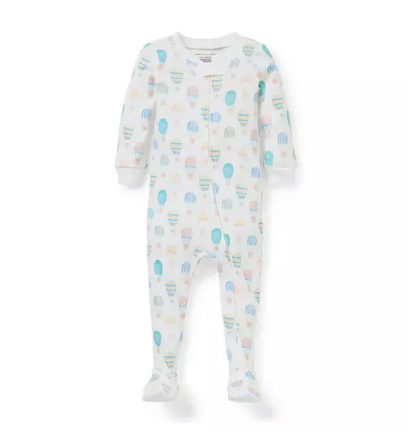 Good dreams reach new heights in our feel-good soft, pure cotton PJ in a one-of-a-kind hot air balloon print. With even more good things, from its cozy footed style to its easy zip front.