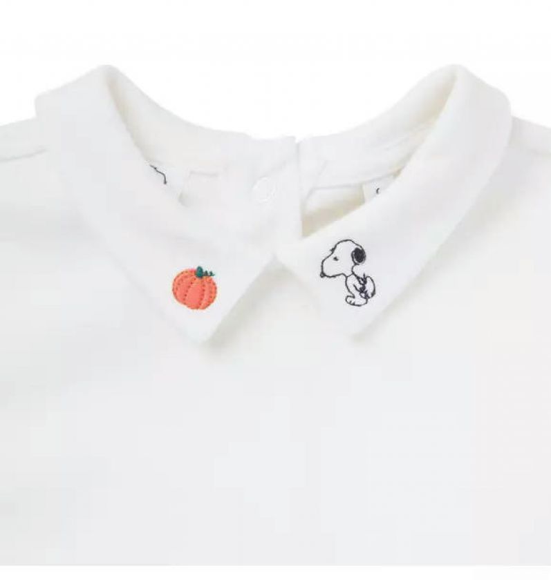 Our favorite soft and cozy bodysuit gets a seasonal update with our favorite friend. With a little embroidered Snoopy and pumpkin detail at the collar, it's ready for all of baby's autumn adventures.
