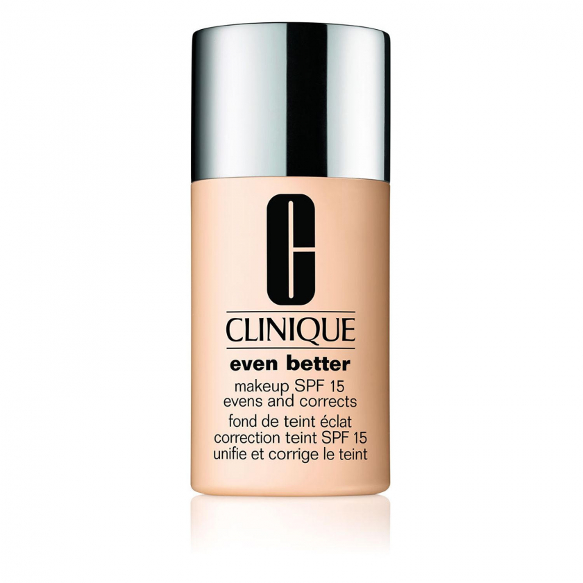 Тональная основа Clinique Even Better Makeup SPF 15 с витамином C и антиоксидантами для улучшения тона кожи, уменьшения темных пятен и защиты от солнца. Подходит для сухой и комбинированной кожи, имеет среднее покрытие и естественный финиш.