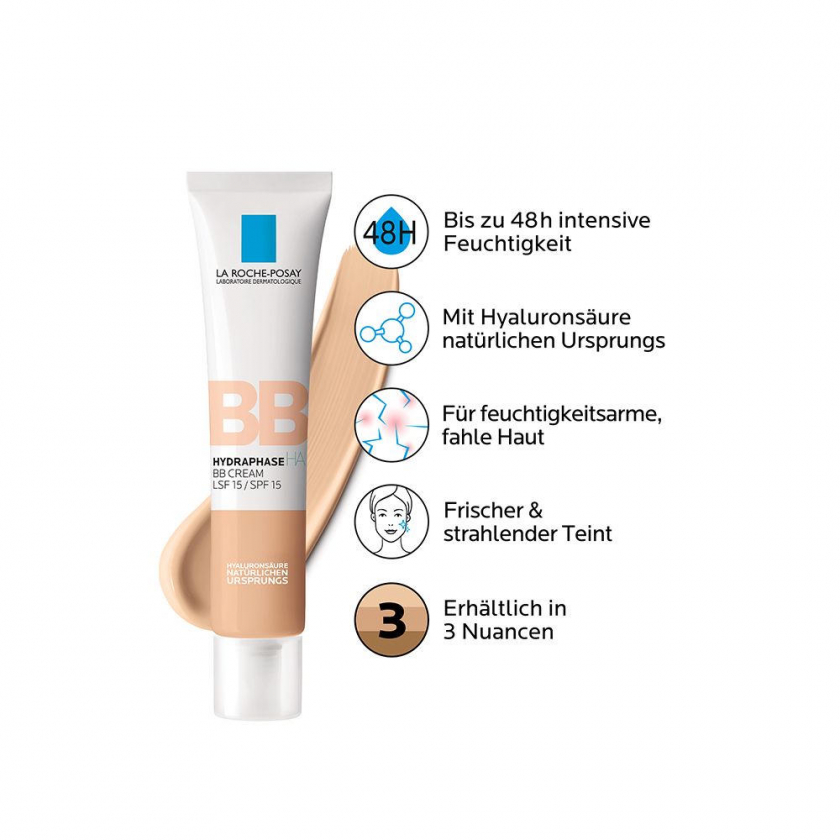 Увлажняющая BB-крем с SPF 15 от La Roche Posay для сухой и чувствительной кожи. Обеспечивает до 48 часов интенсивного увлажнения, выравнивает тон лица и защищает от УФ-излучения. Содержит гиалуроновую кислоту, глицерин и термальную воду.