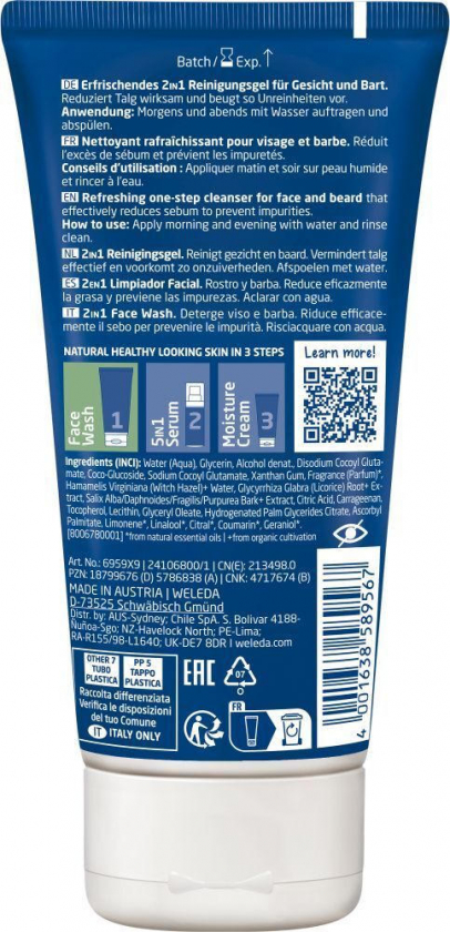 Weleda For Men 2in1 Face Wash - erfrischende porentiefe Reinigung für Gesicht und Bart