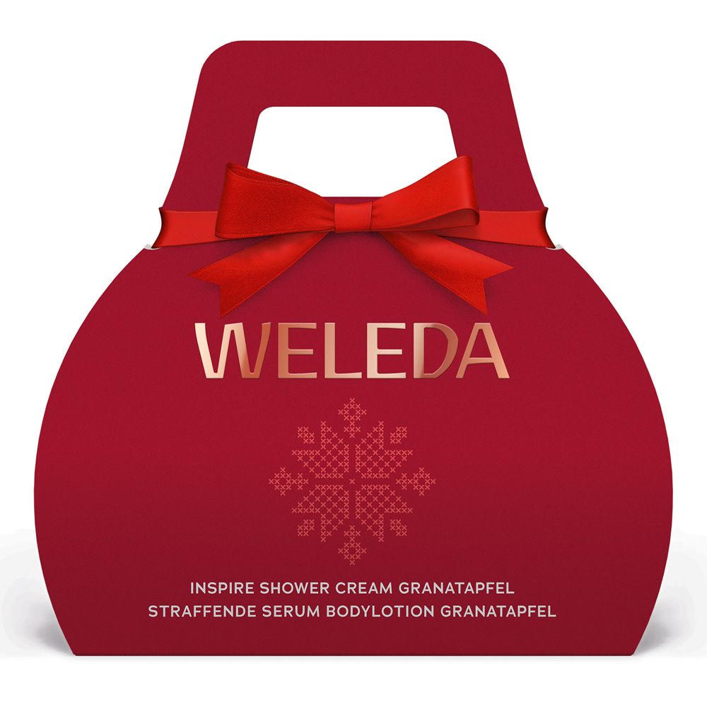 Мини-подарочный набор Weleda Granatapfel 2025 включает гель для душа и укрепляющую сыворотку-лосьон для тела с гранатовым маслом. Набор предназначен для ухода за кожей, обладает антивозрастным действием и подходит для путешествий или в качестве подарка.